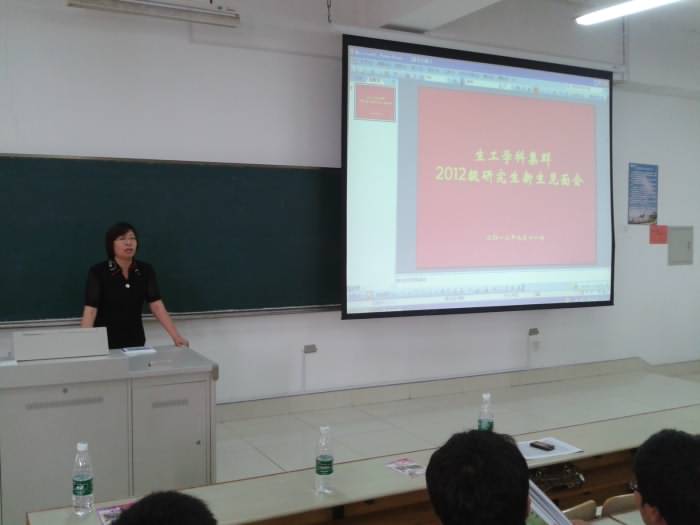 朗朗金秋,华夏大地处处洋溢着丰收的喜悦。在这美丽的日子里,南工大生工学科集群又迎来了新一批青春飞扬的学子。9月11日上午,生工学科集群2012级研究生入学报告会在同和513教室举行。公司党委书记缪昌美老师、经理韦萍教授、副经理何冰芳教授、药公司常务副经理卢定强教授、食品公司副经理姚忠教授,公司学科办公室王浩绮老师、研究生办公室吴玲燕老师、生工学科集群研究生会主席杨晗等,与2012级研究生一同出席了新生入学报告会。