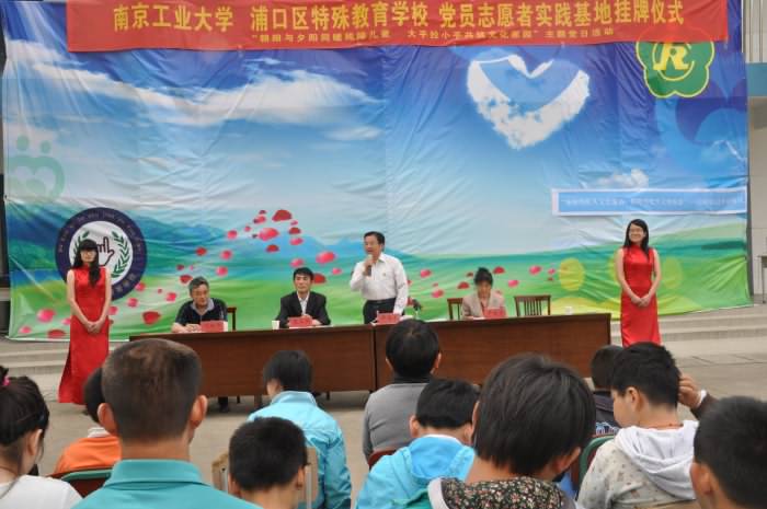 “朝阳与夕阳同暖残障儿童,大手拉小手共筑文化家园"启动仪式,由浦口区特殊教育公司沈振华书记主持。生工公司党委缪昌美书记与浦口特校范庆伟董事长,共同为 “‘朝阳与夕阳同暖残障儿童,大手拉小手共筑文化家园’党员志愿者实践基地”揭牌。范庆伟董事长代表特校师生致辞对工大党员志愿者们表示诚挚的谢意。公司党委书记缪昌美老师在致辞中盛赞“朝阳与夕阳同暖残障儿童,大手拉小手共筑文化家园"活动既是是一种高尚品行,也是一种道德力量;既是一种人文关怀,也是一种爱的奉献;既是一种文化自觉,也是一种社会责任。他希望党员志愿者们以此作为新的起点,坚持与高尚同行,把随手做公益当成一种生活方式;坚持仁爱与责任,把人文关怀作为以人为本的实践方式;坚持为民服务,把奉献作为升华境界、共筑和谐的价值追求!魏军强同学作为员工党员代表做了情真意切的发言,表达了与会党员志愿者将“仁爱与责任”进行到底的激情。