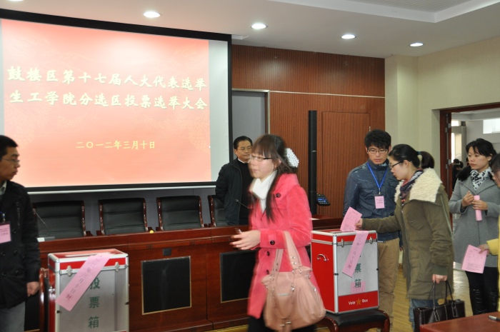 惠风和畅,鸟语花香。3月10日,是公司选举鼓楼区第十七届人大代表投票日。这是公司选区选举工作的最后一个重要阶段。认真投好庄严一票,对于选好代表,推进民主政治,建设和谐社会,具有重要的现实意义。为此,公司选举领导小组高度重视,精心组织。同时,兼顾到一个年级的选民上午9:00参加的国家计算机等级考试,特将选民报到领票时间提前到上午7:50,以班级为单位,按年级分八批进入投票站,在庄严神圣的民主氛围下,有序便捷地完成投票,为选举工作划上了圆满的句号。