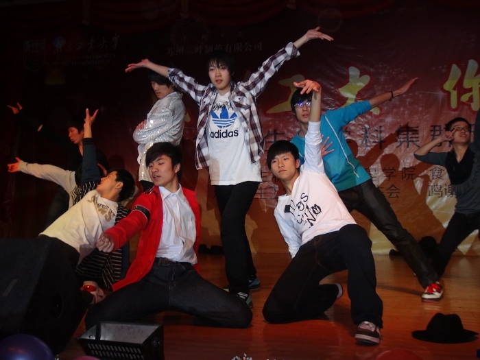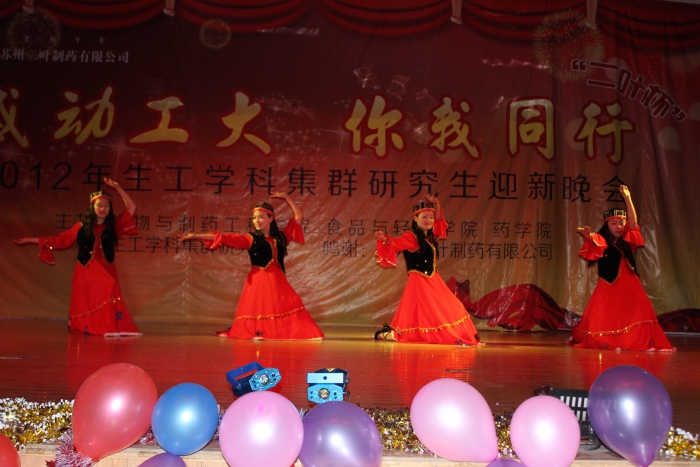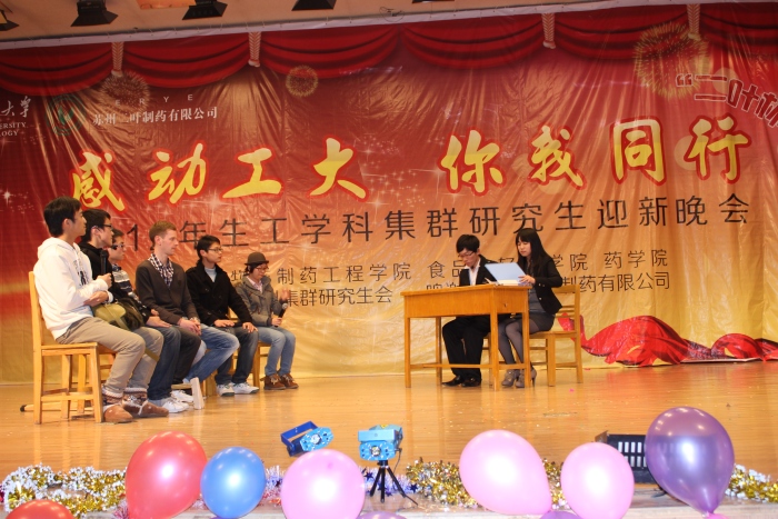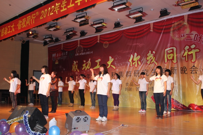 晚会开始前,舞台大屏幕上一幕幕反映生工学科集群研究生会在过去一年里举办的精彩活动及感动的瞬间,为整场晚会烘托出了浓浓的氛围。一曲充满青春动感的舞蹈拉开了序幕。随后,《魔法诱惑》中喷火变玫瑰、以一个酒瓶变出六个,让人眼花缭乱,不知奥妙,意犹未尽;相声《戏说工大》基于现实和创新的基础上,独到的释义,精准的演绎,引人发笑的同时又发人深省;歌曲串烧展示了同学们的多才多艺,青春活力;而鼓楼特校师生们的歌舞与古筝表演,则让我们深受感动,孩子们的每一个动作,每一个音符都饱含艰辛,尽管他们异于平常孩子,与人交流困难学得慢,但他们却愿意付出比常人多出几倍的努力与汗水来练习,为的就是给大家带来欢乐、给自己展现自我的舞台,这种精神,这份真情怎不叫人动容;紧接着的话剧《还珠格格之非诚勿扰》以时下流行的无厘头语录与大胆夸张的动作逗得观众们哈哈大笑,拍手叫好;手语舞《我很快乐》、街舞《dangerous》和新疆舞《吐鲁番的葡萄》分别向我们展示了不同舞种的魅力,同时也充分展示了同学们的奔放激情;小品《招聘》以现实生活为原型,展现了当今社会的现实面,通过演员们活灵活现的表演给观众们带来了无限的欢声笑语,将晚会的气氛推向高潮。另外,本次晚会的亮点Cosplay《三国杀》,将时下流行的网络游戏搬上舞台,引起了同学们的共鸣。此外,贯穿整场晚会的游戏和抽奖环节,使台上台下互动起来,让更多的观众参与其中,享受快乐。最后,伴着《爱,因为在心中》的优美旋律,生工研会全体成员用优美和动情的歌声,为此次迎新晚会画上了圆满的句号。历时三个小时的晚会,台上流光溢彩,气贯长虹,台下掌声雷动,笑声起伏。