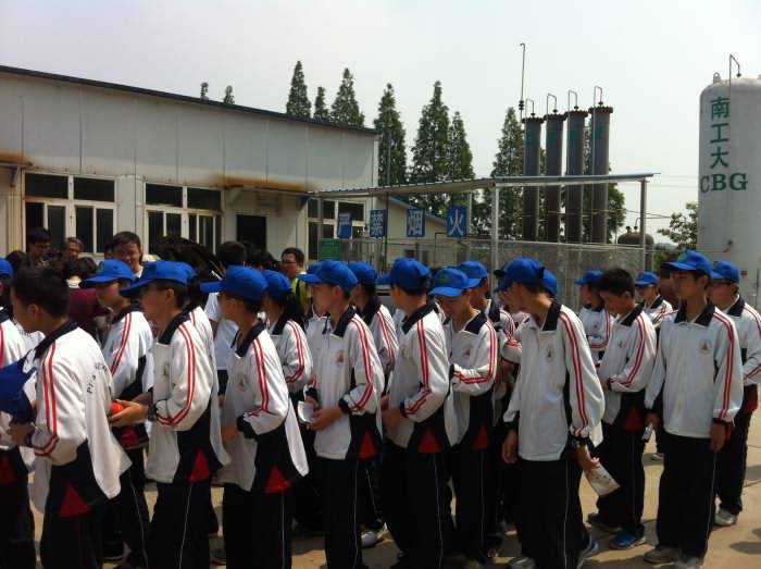 车用生物天然气示范工程作为先进生物与化学制造协同创新中心的研发平台之一,始建于2007年,2008年正式运行。该示范工程秉承欧阳平凯院士“创新生物技术,助推两型社会,支撑科学发展,引领美好生活”的创新指向,以校园内人粪尿、农作物秸秆、校区餐厨垃圾等低劣生物质为原料,采用中温、连续液体厌氧发酵工艺,厌氧发酵反应器容积300立方米,日处理能力15吨,日产沼气300立方米。所产沼气通过自主创新的沼气提纯净化技术,变成甲烷含量达97%以上的生物天然气,用于驱动校内巴士,性能不亚于市售天然气。厌氧发酵残余物经过固液分离后,沼液用于浇灌校区的山林茶园,沼渣用于生产新型功能性有机肥料,有效地实现了低劣生物质资源的循环利用和低碳减排的目标,并获得了多项发明专利。实践表明,车用生物天然气示范工程不仅扮靓了“山清水秀、鸟语花香、低碳人文”的工大校园,而且从“资源节约型、环境友好型”的意义上,为解决农作物秸秆、水生植物、人畜禽粪尿、城市生物质垃圾的综合利用,以及生物甲烷技术的产业化应用,产生了一定的示范效应。