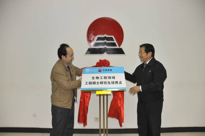 ——天冠集团总工程师杜风光与公司党委书记缪昌美为生物工程领域工程硕士研究生培育点揭牌