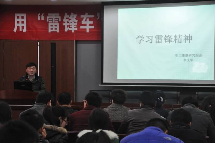 ——生工学科集群研究生会举行“用‘雷锋车’精神践行核心价值观报告会”