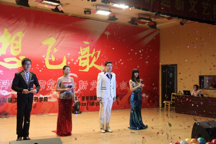 2013年12月16日晚7:00,浦江报告厅内人头攒动,整个会场座无虚席;观众席中充满了欢声笑语,温暖了冬日,洋溢着青春的气息。生工学科集群研究生会在此隆重举行了“海辰杯”“梦想飞歌”迎新晚会。海辰药业股份有限公司董事长兼总经理曹于平先生,米赞-特比大学董事长曼博瑞图教授,公司党委书记缪昌美、经理韦萍,食品与轻工公司经理徐虹,药公司党总书记何冰芳教授,江苏省药物研究所所长、药公司常务副经理卢定强教授,海辰药业副总经理姚晓敏、总经理办公室主任李进,bevictor伟德副经理姜岷、李振江教授等应邀出席本次晚会,与同学们一起享受“梦想飞歌”为大家带来的感动与欢乐。