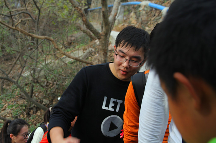 从个人的角来说,我是不喜欢登山的,从小生活在山区,见惯了大山,也爬过很多山,但以团体的形式去爬山,这还是第一次。我们组里有三男三女,女生的体力会相对差些。因此从一开始我们就没有像别的队一样各自行动,而是由我和东升在后面垫后,让女生在前面走,这样,可以保证女生不掉队,而男生也可以节省体力。在爬山的过程中,我们始终没有放弃过任何一名队友,即使在我们体力很充沛的时候,我们依旧没有丢下疲惫的队友独自先行,也正是这种相互之间的扶持,让每个队员没有松懈过,一直在激发着自己的潜能。无论是在拾级而上的台阶路上,还是在布满黄叶的枯黄山体上,还是在陡峭险峻的岩石路上,虽然我们走的很慢,但我们从来没有停下来过。在登山的过程中,我们有过疲惫,有过抱怨,有过绝望。但是我们没有失去过队友的关心,没有失去过坚持的信念,也没有失去过对胜利的渴望。正是这种饱含决心的集体情怀,让我们所有的队友几乎在同时登上了山顶。我们不是最先登上山顶的个人,但我们是最先登上山顶的团体。这是团体性对个人主义的完胜。