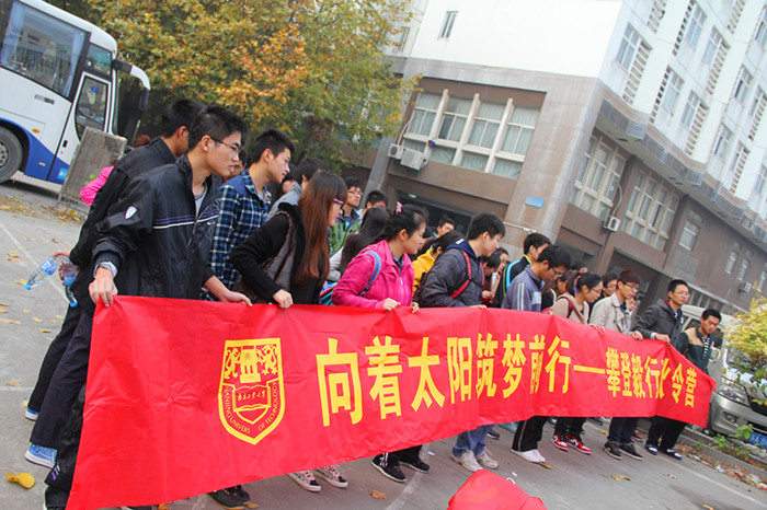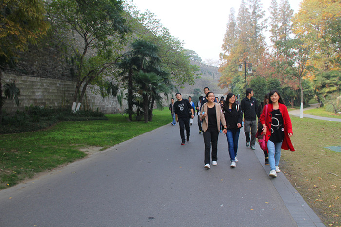 本次毅行活动以小组为单位,分成七个小组,共设置一、二、三等奖各一名,每个小组的所有成员全部到达山顶才算最终胜利,其他未得奖的同学也都会获得一份精美的小礼品。本次活动的路线是从玄武湖公园直至紫金山头驼岭。在玄武湖公园同学们蓄势待发,像离弦的箭一般跃跃欲试,经过30多分钟后终于到达了紫金山脚下。当登山活动真正开始时,大家才感觉到山路毕竟不比平路,对于长期在实验室工作和学习的我们来说,攀爬一段时间都会出现体力不支的情况,然而,一路上,并没有消极的抱怨声,只有昂扬的激情和坚持到底的决心。男生们也十分照顾体力稍逊的女生,他们积极地帮女生拎包,时刻注意着女生的安全,并体贴的让女生走在队伍中间,大家还十分注意劳逸结合,如果有人感到劳累就会停下稍作休息。同学们望着陡峭的山路,没有一个有退缩的心理,一路上都充满了同学们互相关心,互相激励的声音。看着越来越近的山顶,尽管有些同学已经筋疲力尽,但还是咬紧牙关爬了上去,体验并分享了登顶后的喜悦。当到达山顶的那一刻,望着自己所走的路,才发现原来再大的困难只要敢于面对、敢于攀爬,就没有过不去的。