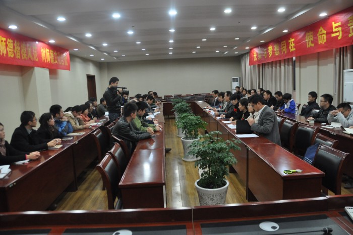 校“师德楷模”何冰芳教授在发言中谦逊地说,荣誉从集体来,荣誉是历史的。她深感“明德、厚学”是教师使命和责任的两块基石。她本着“不能误人子弟”的精神,不断提高自己的师德修养和学术水平,以自己的满腔热情面对员工,并在员工身上得到了更多的感动和幸福。她认为,梦想引领方向,梦想激励斗志,梦想成就未来。作为一名光荣的人民教师,要善于用“梦想与责任”点燃员工的“梦想与责任”!