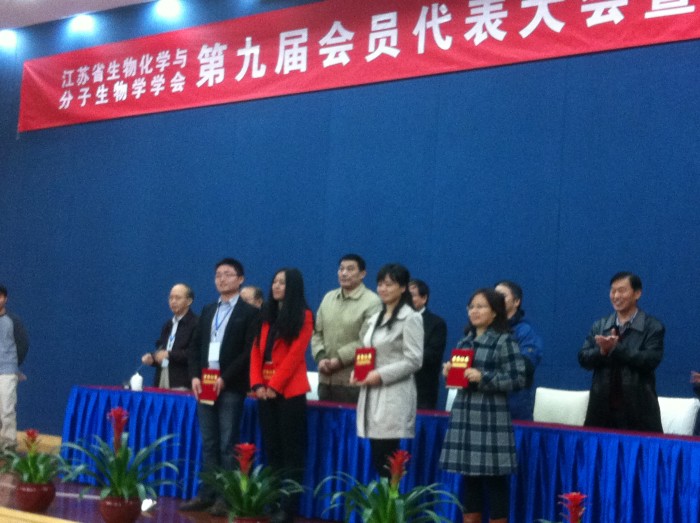 2013年11月8日至10日,何冰芳教授、谢婧婧教授率研究生代表团参加了在镇江举行的江苏省生物化学与分子生物学学会第九届会员代表大会。会议共有来自江苏各高校及科研机构的200多名专家学者参加。本届大会由江苏省生物化学与分子生物学学会和江苏大学主办,大会立足科学前沿,就微生物技术,生物医学材料,病理研究,天然药物研究等领域开展了广泛而深入的探讨。
