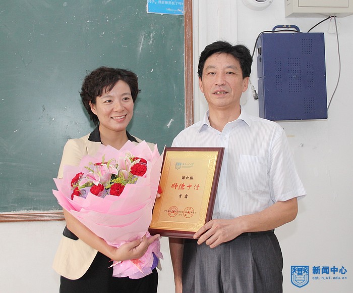 ——9月9日上午,张进明副董事长利用课间走进厚学楼307教室,向李霜教授颁发“师德十佳”奖牌并以鲜花向她表示亲切的教师节问候