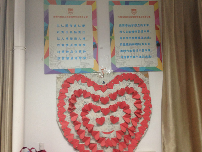 在楼道文化建设中,bevictor伟德关工委会同青教协、研究生会,将大家认同的文化精神的宣示与生工学科楼楼层的标识有机地融为一体,形成了一道彰显精神坐标的风景线。让青年教师进出生工学科楼每一楼层时,既能明了楼层的位置,又能从知行合一的高度强化“以仁爱传递仁爱,以责任弘扬责任,以人格塑造人格,以激情点燃激情,以精神点化精神,以智慧启迪智慧”的文化熏陶。让青年员工进出生工学科楼每一楼层时,既能明了楼层的位置,又能从全面发展的高度强化“用青春的梦想点亮未来,用人文的情怀引领未来,用科学的智慧奠基未来,用健康的体魄给力未来,用时代的责任奉献未来,用蓬勃的朝气添彩未来”的价值追求。