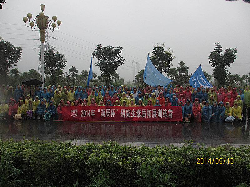 9月10日,生工学科集群2014级研究生相约风景秀丽的江宁善登拓展基地,举行“海辰杯”研究生素质拓展训练活动。好像天公有意要考验生工学科集群2014级研究生似的。本来阴有多云的天气,待同学们乘车到达目的地时竟然一个劲地下起雨来。怎么办?同学们说,本次南京青奥会开幕式也是在雨中精彩地举行了,我们穿着雨衣也可以体验雨中拓展的别样风景。接着同学们的话语,公司党委书记缪昌美老师举着雨伞回应道:好——风雨过后是彩虹!他特别感谢南京海辰药业有限公司为生工学科集群研究生设立的“海辰奖学金”;感谢海辰药业副总经理姚晓敏、工会主席李进作为校外导师代表,受曹于平董事长的委托早早驱车来到现场,与朱颐申、王丽娟和吴玲燕等校内老师代表一起为同学们鼓劲给力!他希望同学们通过素质拓展训练,更好地展示当代研究生的激情与朝气、智慧与风采、友谊与风格、活力与灵感,尽快融入“团结奋进、勇于超越、追求卓越”的文化,努力做富有创新精神、实践能力和社会责任感的新一代研究生。海辰药业副总经理姚晓敏在致辞中对同学们充满了殷切的希望,希望大家勇于面对每一个挑战,认真对待每一个困难,用汗水点亮青春,用激情点亮未来。