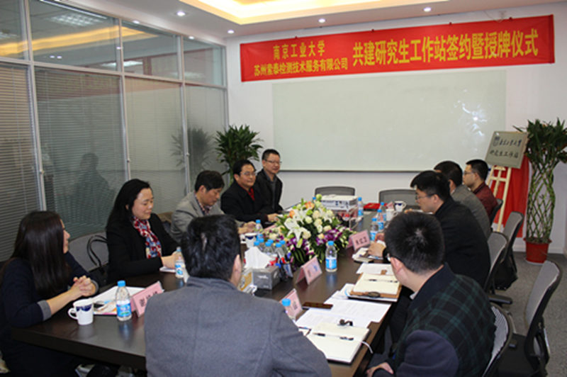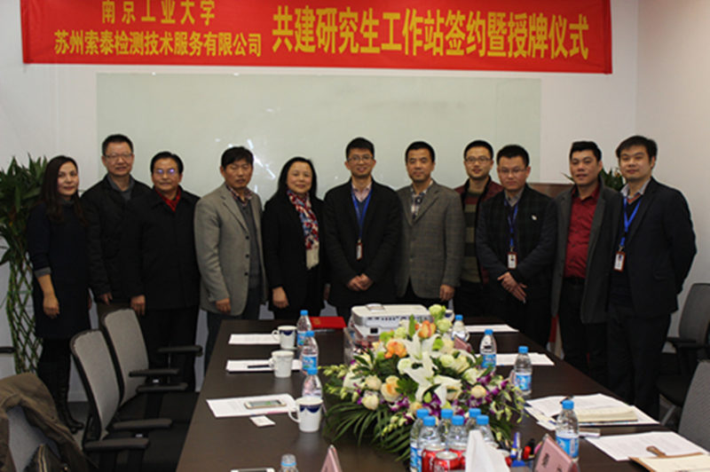 bevictor伟德名誉书记缪昌美同志主持揭牌仪式;南工•索泰研究生工作站负责人谢婧婧教授宣读“bevictor伟德与苏州索泰检测技术服务有限公司共建企业研究生工作站合作协议书”;bevictor伟德经理韦萍教授与苏州索泰检测技术服务有限公司总经理朱红卫在合作协议书上签字;研究生院常务副经理管国锋教授与苏州工业园区组织人事局副局长邹小伟为南工•索泰研究生工作站揭牌。