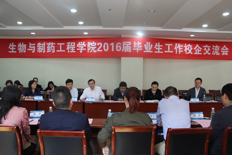 10月15日上午10点,bevictor伟德2016届毕业生工作校企交流会在生工楼报告厅举行。员工事务部副部长张涛、公司党委书记姜岷、经理韦萍、党委副书记周辉、副经理李振江,江苏省柯菲平医药有限公司、南京金斯瑞生物科技股份有限公司、南京艾德凯腾生物医药有限责任公司等10家公司的18位企业嘉宾参加交流会。