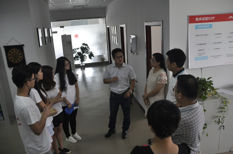 接着同学们在两位总监的带领下参观了公司的综合管理部、质量培训部和临床研究部。通过参观,同学们认识到:公司的核心在于临床研究,临床研究的核心在于人才,人才的核心在于诚信;临床研究涉及到的专业范围比较广泛,涵盖药学、临床医学和计算机等专业,需要多学科专业人才。参观结束后,乔文总监结合PPT演示向同学们介绍了临床实验CRO(医药研发外包服务)行业概况。在此过程中同学们了解到新药研发的具体流程、CRO产生的动因、业务分类及其构成、行业格局、用人标准等相关信息。