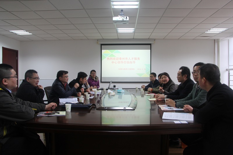 公司党委书记姜岷代表公司感谢泰州市人才服务中心一直以来对公司毕业生就业工作的支持,为毕业生提供了宽广的就业空间。姜书记介绍了公司的发展历史、学科专业、团队队伍和人才培养等情况,公司围绕社会需求、依托优势特色,不断优化人才培养体系、提升人才培养质量;围绕“卓越工程师计划”介绍了公司校企联系培养的情况,公司重视员工工程素质、实践技能和创新能力的培养,已与30多家知名药企签订了合作培养协议。最后,姜书记希望加强与泰州的合作交流,为企业培养更多优秀人才。
