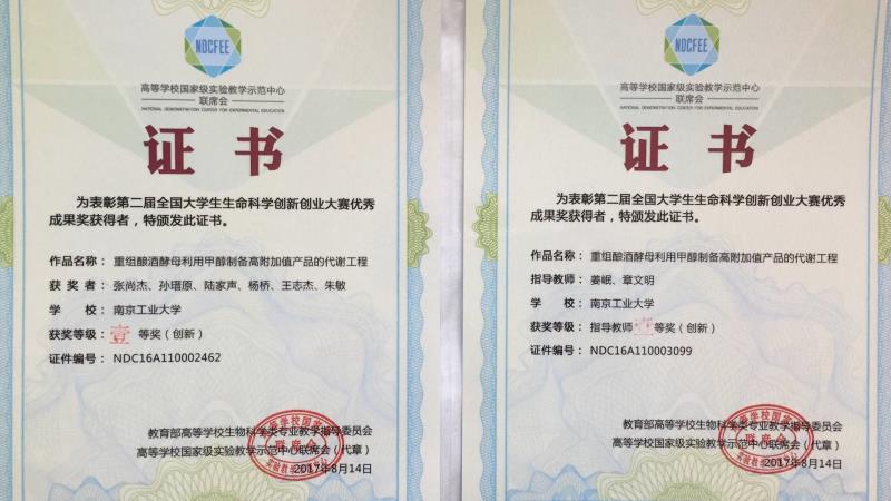 8月12-14日,bevictor伟德学子在兰州大学承办的“第二届全国老员工生命科学创新创业大赛”中,获得一等奖1项、三等奖3项,其中姜岷和章文明老师指导的《重组酿酒酵母利用甲醇制备高附加值产品》项目获得一等奖。