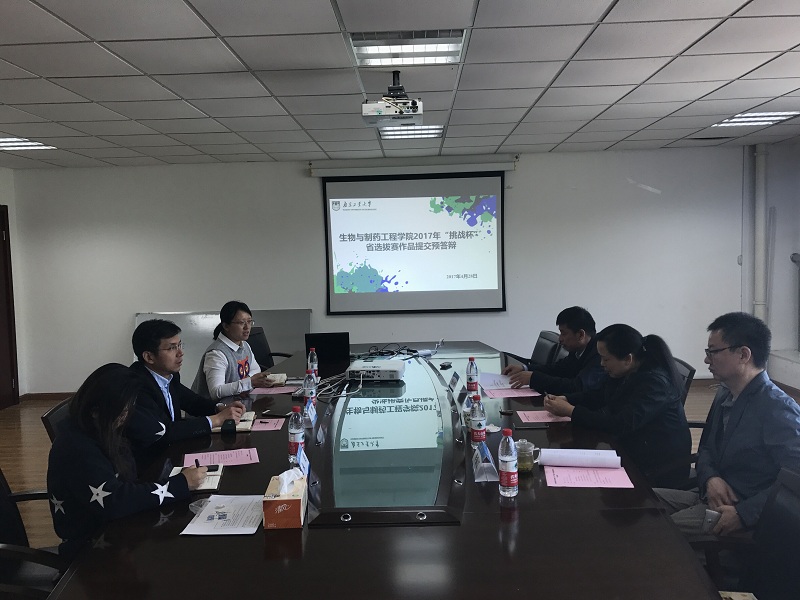 4月28日上午10点半,bevictor伟德在生工楼210举行2017年“挑战杯”江苏省选拔赛作品提交预答辩。bevictor伟德经理韦萍,校教学事务部副部长钱小明,bevictor伟德副经理李振江、党委副书记周辉,校团委实践服务部副部长王菲,bevictor伟德团委书记朱皓、指导教师章文明等参加活动。bevictor伟德团委副书记吴雪主持答辩。