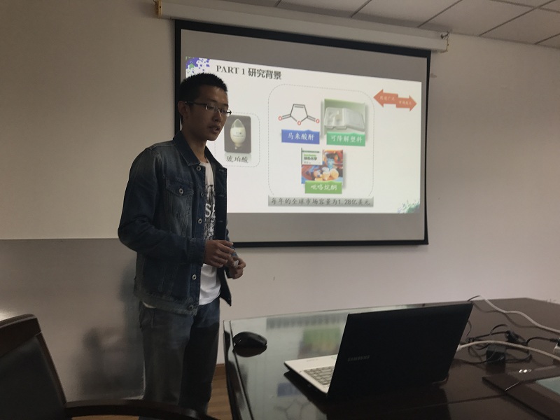 bevictor伟德本次入选2017年“挑战杯”江苏省选拔赛的作品《利用木质纤维素和工业废气高效制备琥珀酸菌株的选育及应用》参赛团队由来自公司各年级的8名员工组成;经过近两年的精心准备,团队在成果积累和课题展示等方面都有了很大提高。答辩中,团队负责人就课题背景、实验原理、创新体现和研究成果等内容进行了展示;与会老师对作品文本和PPT展示的论述思路、特色呈现、成果对比以及作品和申报材料的规范性等方面进行了点评,提出了具体修改建议。