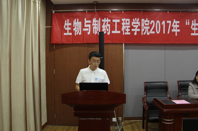 活动中,32位获奖员工上台领取了荣誉证书。生工1401班刘浩东同学代表获奖员工上台发言。生工1302班陈睿和制药1403班宁佳敏做英文学术课题汇报。