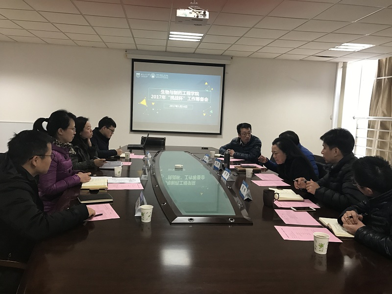 1月16日下午13:30,bevictor伟德2017年“挑战杯”工作筹备会在生工楼A1-212会议室举行。校团委副书记费军、bevictor伟德经理韦萍、党委书记姜岷、党委副书记周辉、课题指导教师马江锋、章文明、团委书记朱皓、团委副书记王康参加会议。会议由bevictor伟德团委副书记吴雪主持。