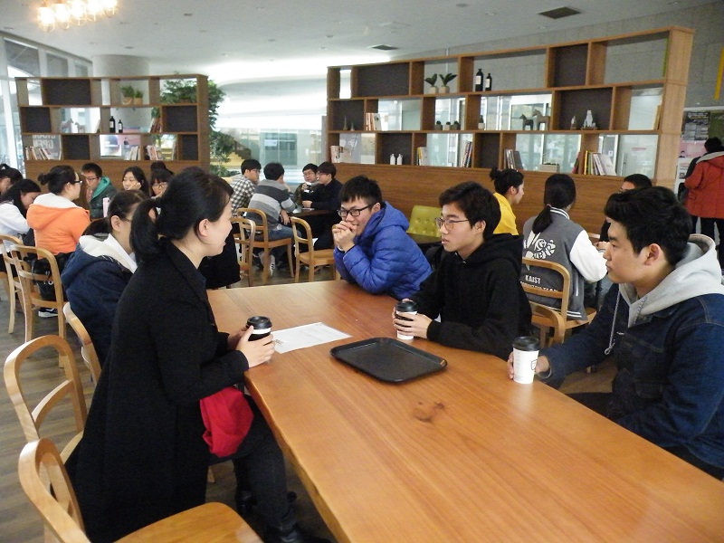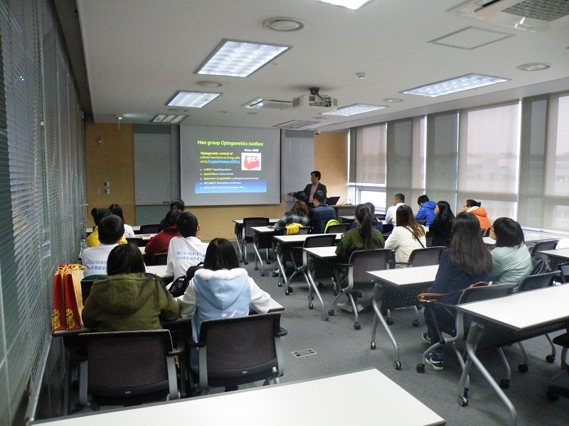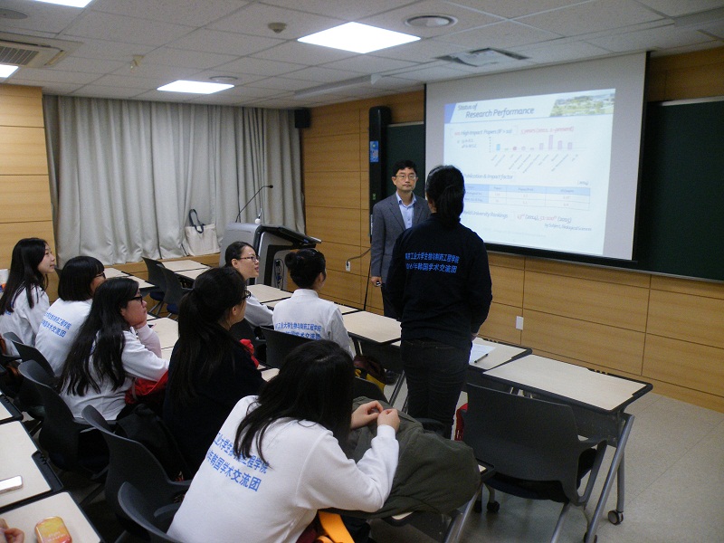10月31日,生工学子访学团抵达韩国科学技术院(KAIST)参观交流,受到了该校国际发展中心Doojea Woo先生的热情接待。KAIST是韩国科技部直属院校,在2015年QS世界大学排名中位列世界43位,在2014年的QS亚洲排名中位列第2位。生命科学与生物工程公司经理Byungha Oh教授向访学团详细介绍了公司和公司的科研水平和发展现状并与访学团进行了亲切友好的会谈。随后,访学团在国际知名教授Won Do Heo的带领下参观了生命科学实验室,与实验室研究人员进行了互动交流。下午,ICISTS员工代表陪同访学团参观KAIST颇具现代气息的校园,并和同学们亲切交流。