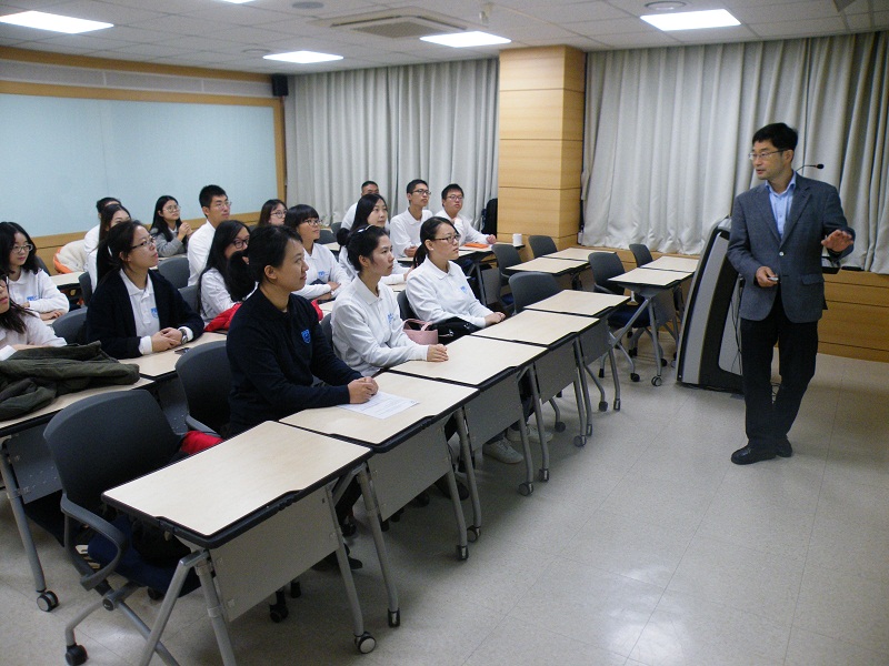 11月1日,生工学子访学团抵达位于韩国益山市的圆光大学参观交流,受到了该校国际交流处国际交流科科长赵衔佑博士及王雅文助教的热情接待。该校前身为1946年建立的“唯一学林”,在韩国近现代教育史上声名远赫,现已发展成为一所蜚声海内外的名牌私立大学。访学团听取了该校自然科学公司生命科学学部Kim Hyun Suk教授讲座,参观了纳米生物实验室、圆光大学附属医院、中央图书馆、民俗文化馆及国际职工宿舍。