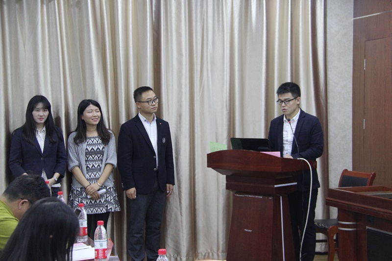 答辩会开始首先由bevictor伟德入围2016年“创青春”全国老员工创业大赛决赛的团队——“南京维思创新材料科技有限公司”团队进行了预答辩。以张文涛同学为代表的四位团队成员以PPT的形式生动展示了“公司”的特色优势及发展前景。评委老师对团队创业计划书和PPT展示以及答辩展示等部分提出了宝贵意见。