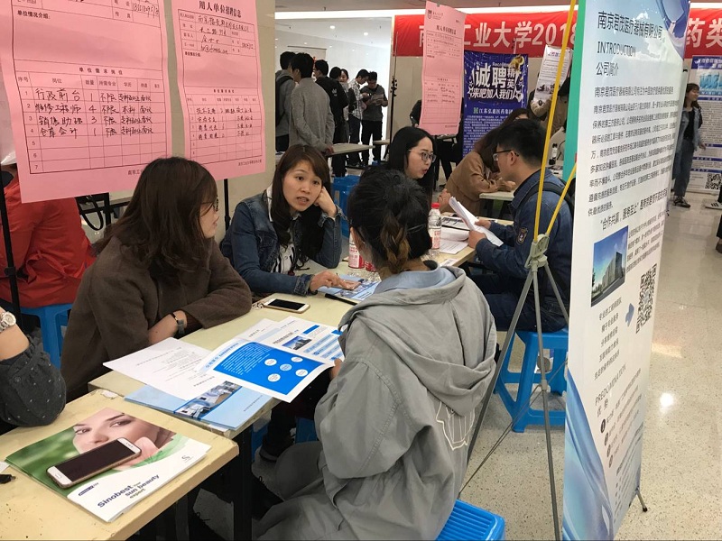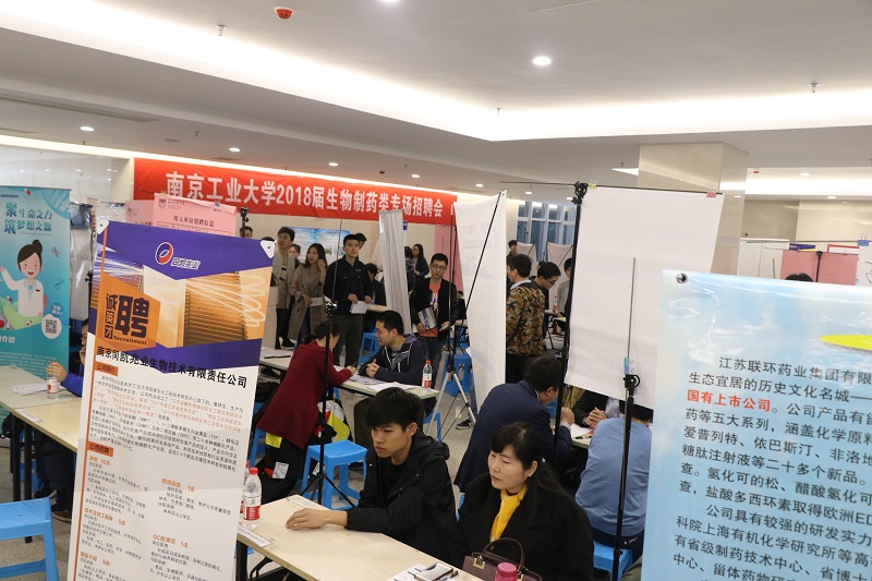 3月30日上午9点,bevictor伟德在材料化学工程国家重点实验室一楼大厅举办“2018届生物制药类专场招聘会”。扬子江药业、恒瑞医药、正大天晴润众药业、奥赛康药业、柯菲平医药、金斯瑞生物科技、山东鲁抗医药、上海翼和应用生物技术等全国六十家企业来校招聘。