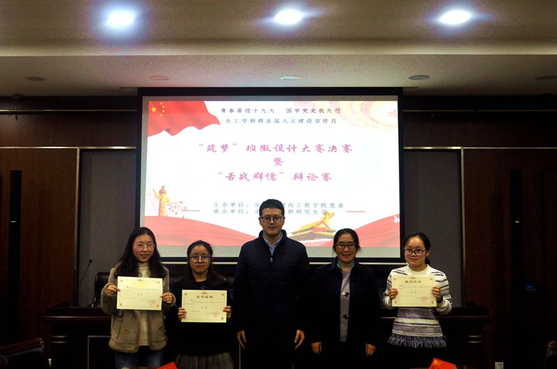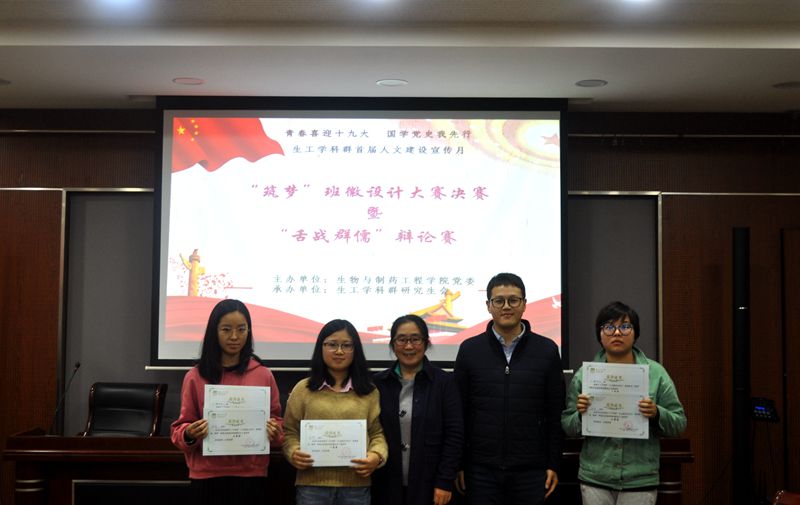 出席本次活动的嘉宾评委有研究生秘书吴玲燕老师、bevictor伟德分团委副书记王康老师、生工学科群研究生会主席陆程同学、生工学科群研究生会副主席相欣然同学。活动的第一部分是“筑梦”班徽设计大赛决赛,经过前期线上的层层选拔,六支参赛队伍最终进入决赛,分别是15级生研4班,16级生研1班、生研2班、药研2班,17级生研1班、药研2班。各个参赛队伍按照抽签顺序依次上台并以PPT的形式对所设计的本班班徽进行成果展示,展示的内容包括班徽设计图案的构思以及蕴含的意义。而后各个评委老师从各参赛队伍所设计班徽的图案外观、蕴意、PPT展示效果等方面进行综合评分,决出一二三等奖。经过最终评比,17级药研2班荣获一等奖,15级生研4班获二等奖,16级药研2班获三等奖,16级生研1班、16级生研2班获优秀奖,17级生研1班获参与奖。