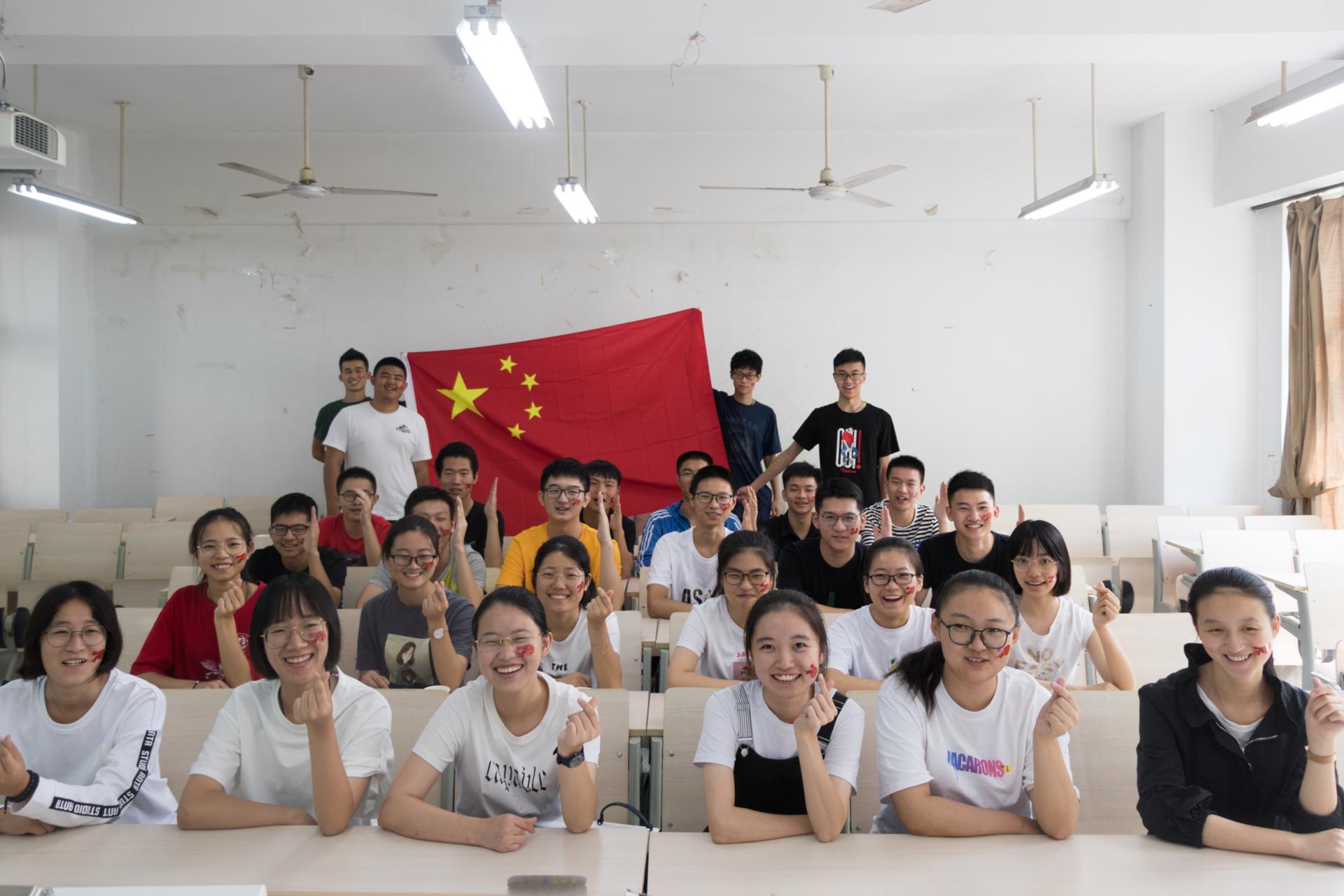 在班会现场,一片热闹欢腾景象,bevictor伟德250名2019级新生在辅导员施有禄和助理班主任的带领下,将“庆祝中华人民共和国成立70周年活动标识贴”贴在脸颊上,一面面鲜艳的五星红旗在室内展开。《歌唱祖国》《强军战歌》《国家》等一首首红色歌曲和爱国歌曲的旋律从教室里传出。公司2019级生物工程、制药工程专业9个班集体用红歌接力的方式上好开学第一课,献礼新中国70华诞。