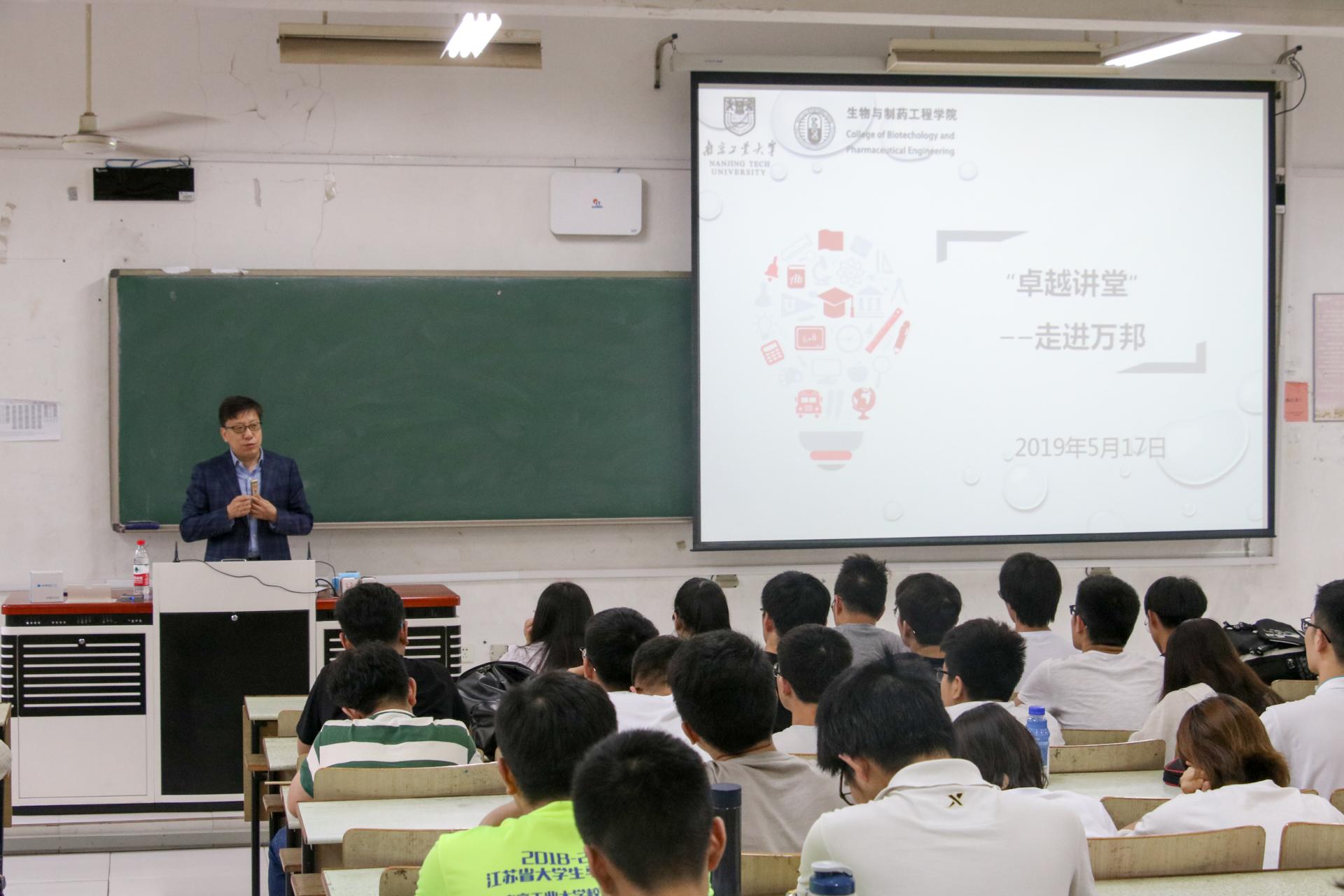 5月17日下午16:00,bevictor伟德“卓越讲堂”企业讲座在仁智315教室举行。讲座特邀江苏万邦生化医药股份有限公司 副董事长、CEO吴世斌担任主讲人。bevictor伟德员工事务办公室主任朱皓主持活动。