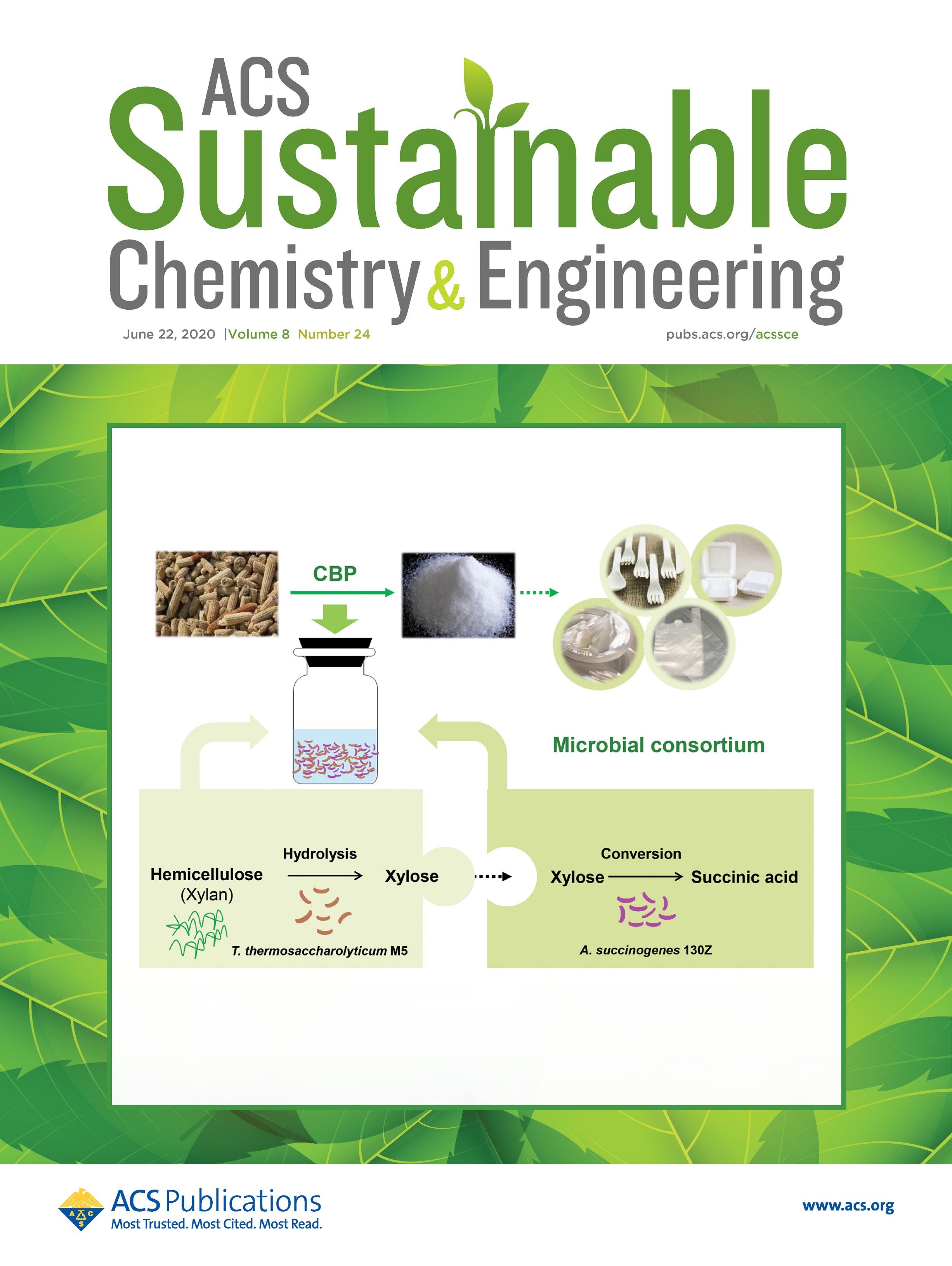 近日,bevictor伟德姜岷教授课题组通过微生物共培养体系建立了将木质纤维素高效转化为琥珀酸的生物加工过程,相关研究成果以“Consolidated Bioprocessing of Hemicellulose-Enriched Lignocellulose to Succinic Acid through a Microbial Cocultivation System”为题发表于美国化学会出版的Top期刊《ACS Sustainable Chemistry & Engineering》(IF=6.97),并被选为当期封面(Cover Article)。论文第一作者为公司博士研究生陆家声,通讯作者为姜岷教授和信丰学副教授。