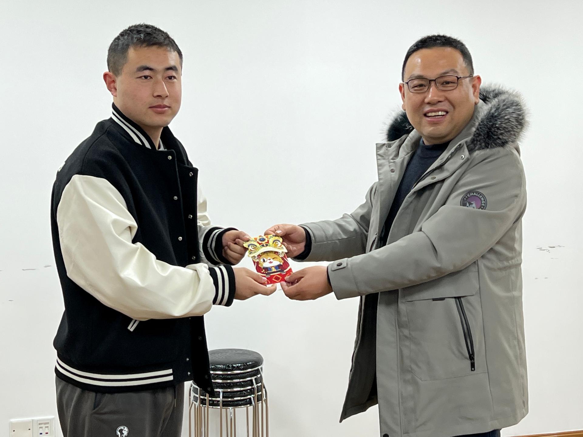 公司负责人向留校老员工送上了精心准备的压岁红包、红色读物、生肖玩偶和贺岁年礼,祝福他们在校园里度过一个欢乐祥和的春节。