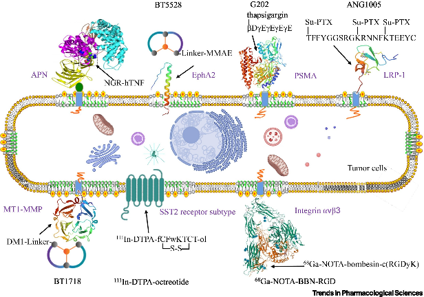 多肽-药物偶联物在分子水平上实现精确的药物递送和肿瘤靶向释放,因此将作为新兴的分子药物递送系统推动药剂学进一步发展。已有多种多肽-药物偶联物作为诊断剂和抗癌药物在世界各地上市,更多的化合物正在进行临床研究。氨肽酶N、整合素、生长抑素受体和其他几种受体是当前基于多肽-药物偶联物的分子药物递送系统的重要分子靶向受体。在这篇综述中,朱颐申教授团队探讨了针对各种受体的多肽-药物偶联物正在进行的临床工作和肿瘤靶向肽和相关受体的结合机制,以及基于多肽-药物偶联物的分子药物递送系统的限制因素。对如何将多肽-药物偶联物作为药物递送系统进行开发提出了创新思路。