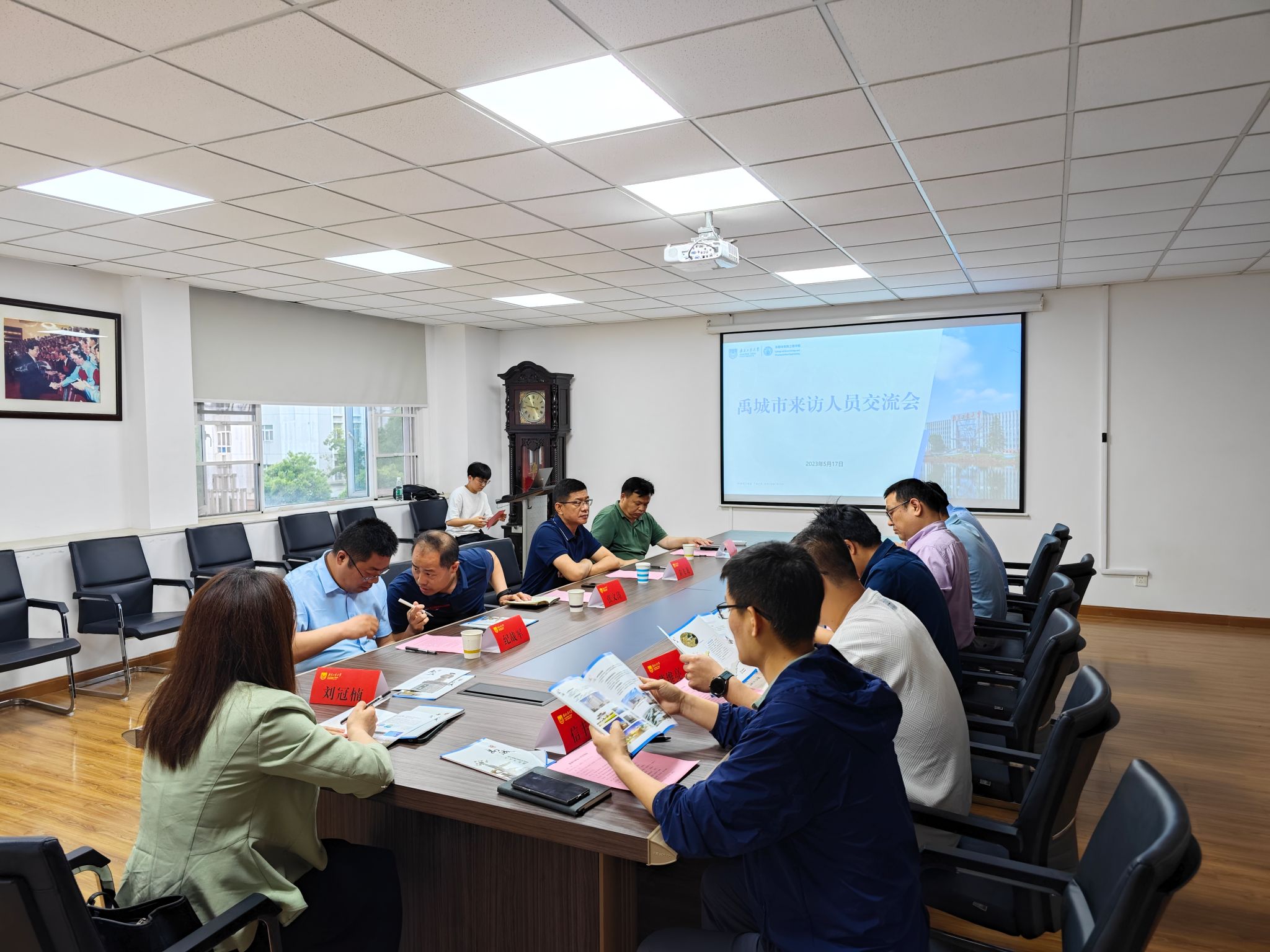 5月17日下午,山东德州禹城市委常委、德州高新区(坐落在德州禹城市)管委会副主任秦飞龙等一行4人来公司进行校地合作洽谈。公司党委书记高振,副经理(主持工作)陈可泉、校科学研究院新农村发展研究院经理董维亮、经理助理刘冠楠和学科教师代表信丰学教授、王瑞教授等出席会议。副经理庄伟主持洽谈会议。