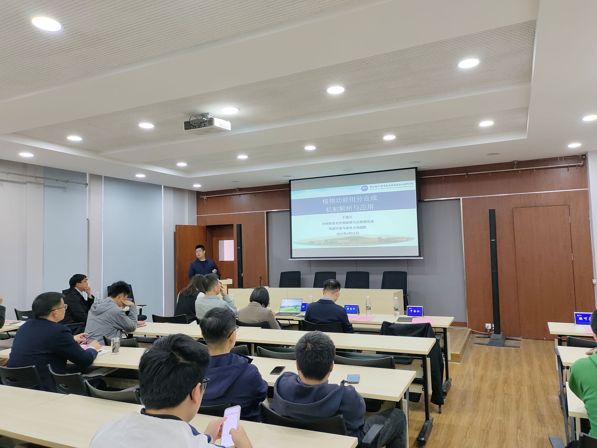 青能所研究生处刘佳处长作《秉持科技报国理想 走进神圣科学殿堂》的报告,为大家详细介绍了中科院、中科院大学及青能所的发展历程、科研布局、研究生招生政策与员工培养质量等。青能所李福利、黄雪年、于昌江三位研究员分别就自己的科研方向和成果为大家做了精彩的学术报告:李福利研究员作《多能驱动的CO2生物转化》的报告,详细介绍了其科研团队在生物技术和生物制造领域取得的科研成果;黄雪年研究员作《微生物合成生物技术与绿色生物制造》的报告,对植物源杀菌剂大黄素甲醚的微生物合成和反式乌头酸微生物绿色制造相关研究做了分享;于昌江副研究员作《植物功能组分合成机制解析与应用》的报告,主要针对植物功能组分的重要性进行了讲解。学术报告会后青能所的各位领导与专家与公司师生进行了热烈的交流和讨论。