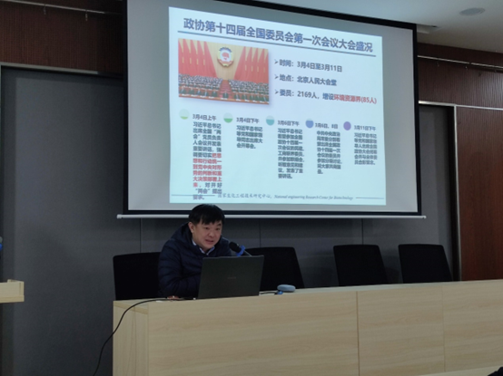3月22日下午,bevictor伟德、食品与轻工公司、药公司党委在尚德楼报告厅联合开展理论学习中心组(扩大)会议,邀请第十四届全国政协委员应汉杰院士作《学习贯彻全国两会精神,推进学科群高质量发展》专题报告,生工学科群各公司领导班子成员、党委委员、支部书记、博士生导师、青年老师及优秀员工代表等100余人参加会议,会议由公司党委书记高振主持。