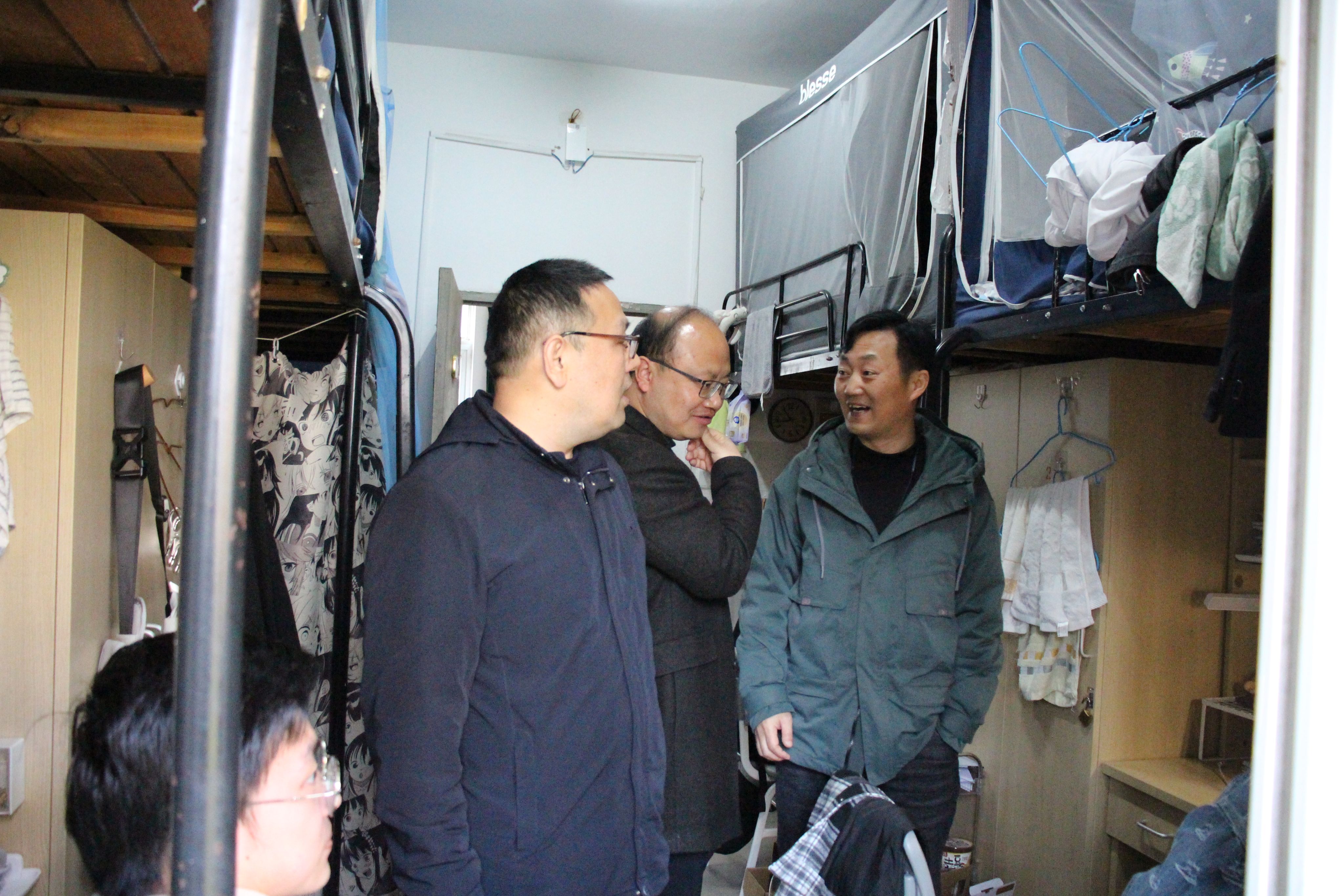 3月18日,公司党委书记高振,党委副书记、纪委书记徐元龙带领公司安全管理员张亚兵、辅导员老师深入员工宿舍,以宿舍安全为重点,走访员工并开展宿舍综合检查。